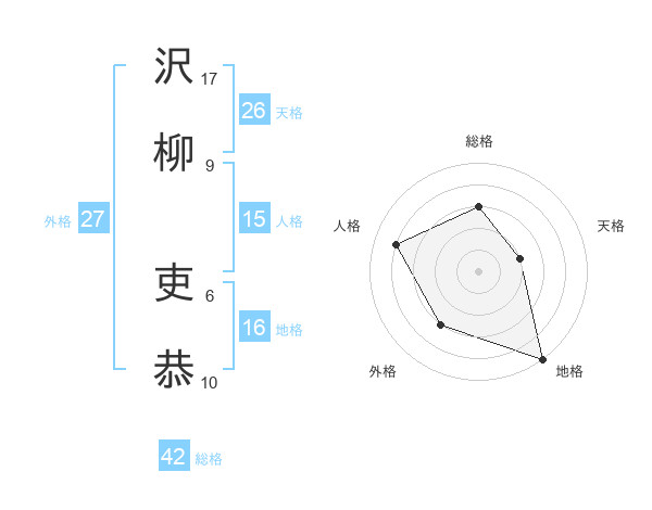沢柳 吏恭さんの総格は42画の3点!