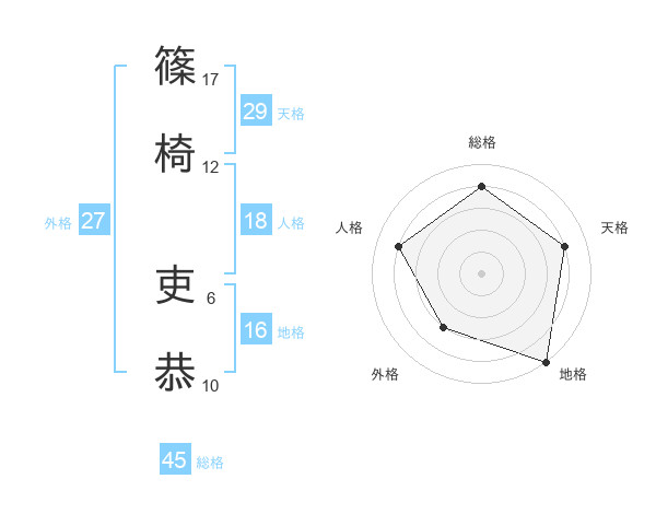 篠椅 吏恭さんの天格は29画の4点!