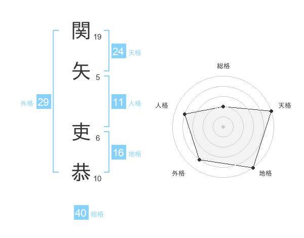 関矢 吏恭さんの天格は24画の5点!