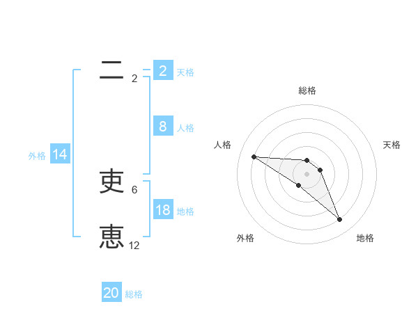 二 吏恵さんの外格は14画の1点!