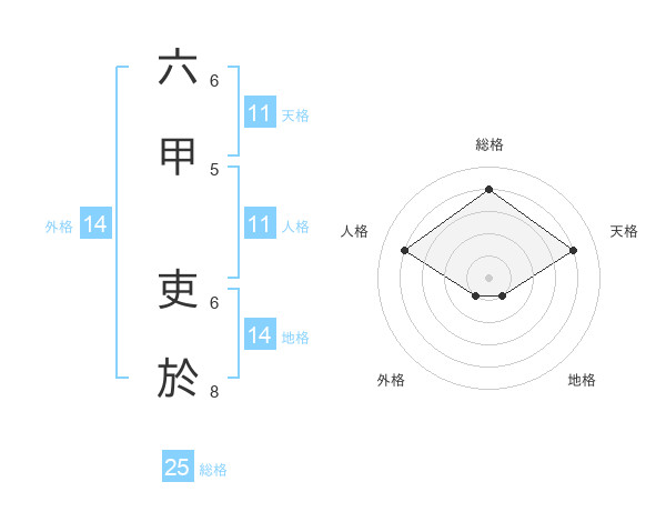 六甲 吏於さんを姓名の画数から五運を鑑定
