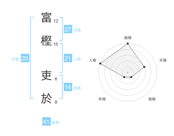 富樫 吏於さんの総格は41画の5点!