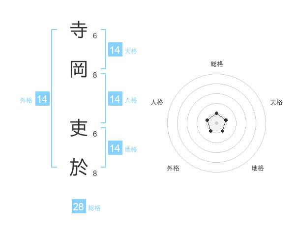 寺岡 吏於さんの天格は14画の1点!