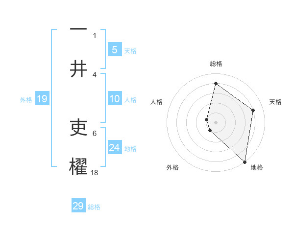 一井 吏櫂さんを姓名の画数から五運を鑑定