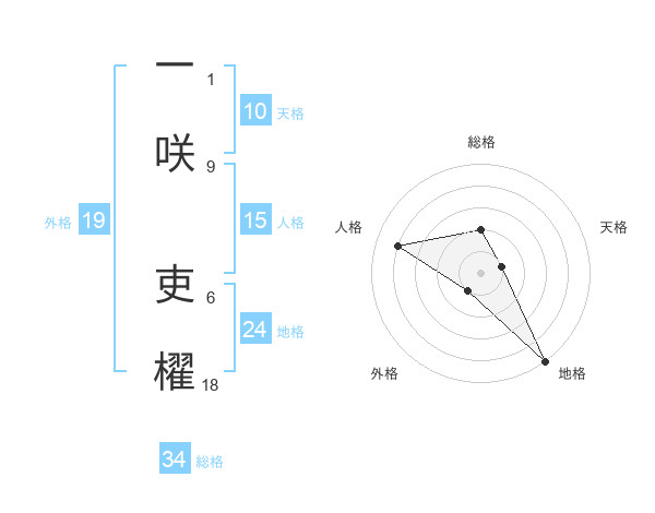 一咲 吏櫂さんの総格は34画の2点!