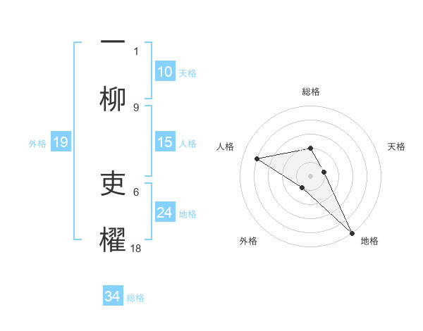一柳 吏櫂さんを姓名の画数から五運を鑑定