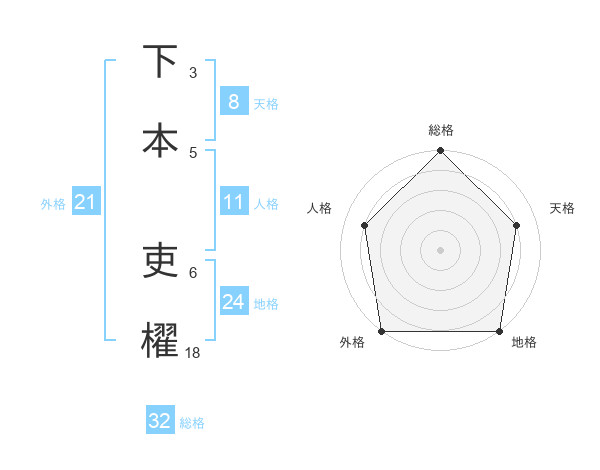 下本 吏櫂さんの外格は21画の5点!