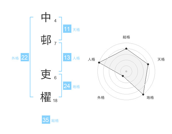 中邨 吏櫂さんの外格は22画の1点!