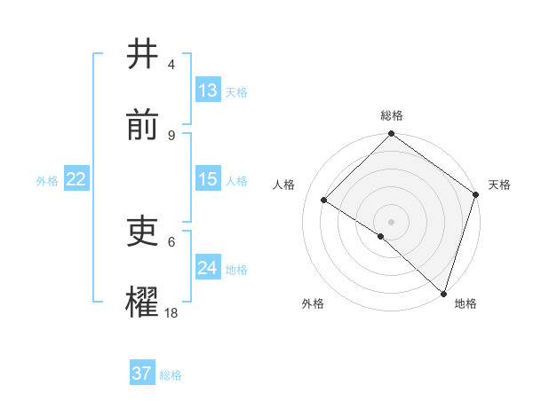 井前 吏櫂さんの総格は37画の5点!