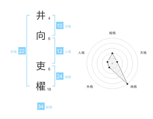 井向 吏櫂さんの総格は34画の2点!