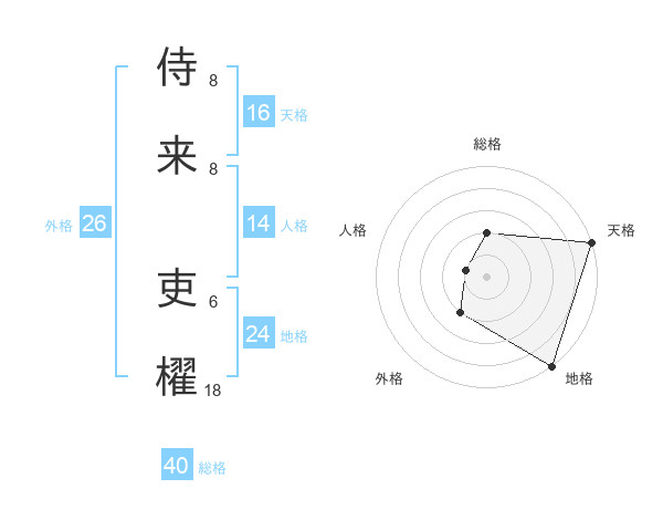 侍来 吏櫂さんの外格は26画の2点!