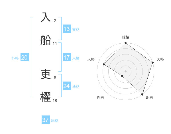 入船 吏櫂さんの総格は37画の5点!