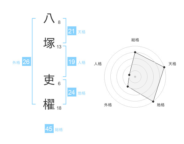 八塚 吏櫂さんを姓名の画数から五運を鑑定