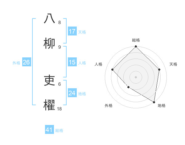 八柳 吏櫂さんの外格は26画の2点!