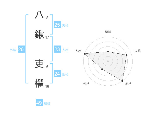 八鍬 吏櫂さんを姓名の画数から五運を鑑定