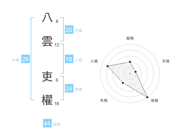 八雲 吏櫂さんを姓名の画数から五運を鑑定