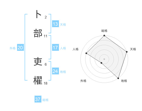 卜部 吏櫂さんを姓名の画数から五運を鑑定