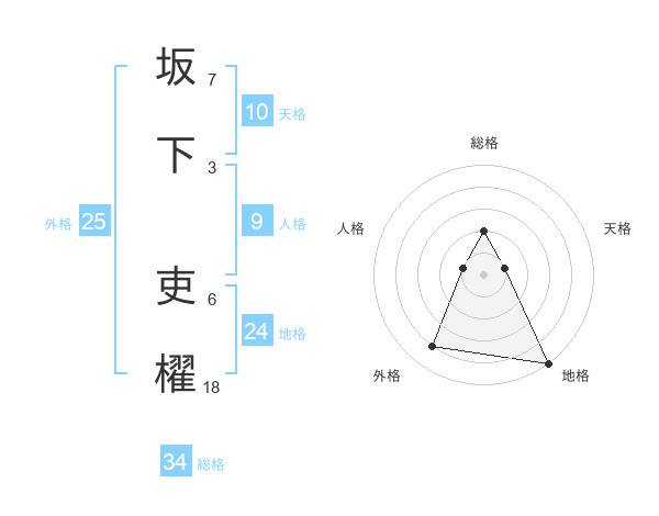 坂下 吏櫂さんを姓名の画数から五運を鑑定