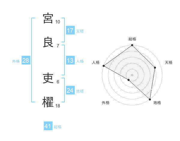 宮良 吏櫂さんの天格は17画の4点!