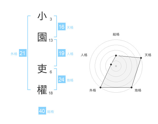 小園 吏櫂さんの外格は21画の5点!