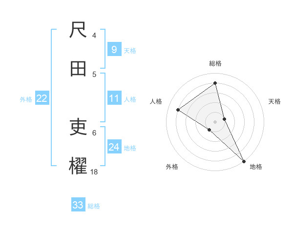 尺田 吏櫂さんの総格は33画の4点!
