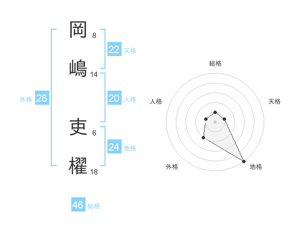 岡嶋 吏櫂さんの地格は24画の5点!