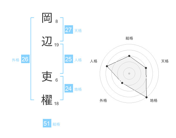 岡辺 吏櫂さんを姓名の画数から五運を鑑定