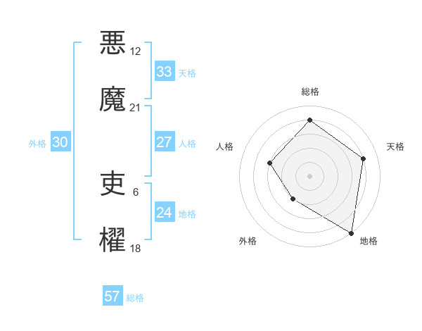 悪魔 吏櫂さんの天格は33画の4点!