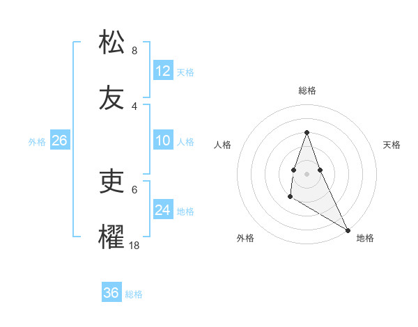 松友 吏櫂さんを姓名の画数から五運を鑑定