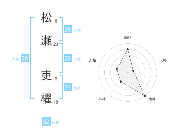 松瀬 吏櫂さんの外格は26画の2点!