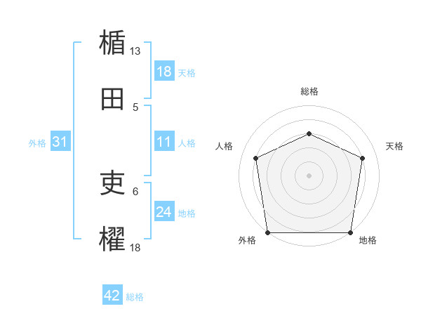 楯田 吏櫂さんを姓名の画数から五運を鑑定