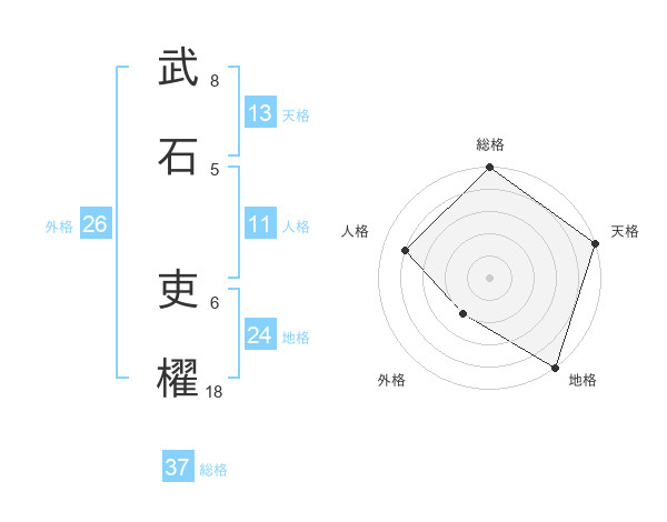 武石 吏櫂さんの総格は37画の5点!