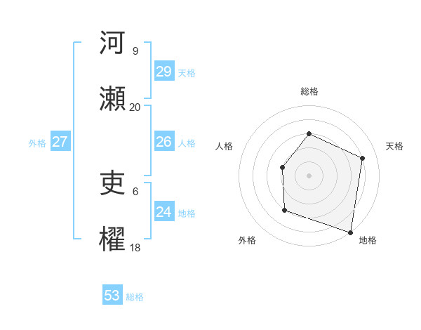 河瀬 吏櫂さんを姓名の画数から五運を鑑定