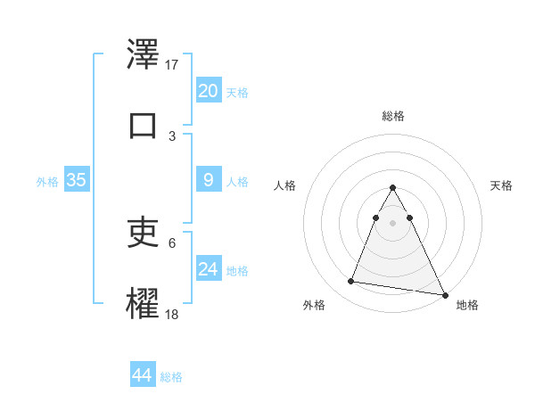 澤口 吏櫂さんを姓名の画数から五運を鑑定