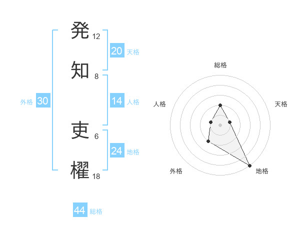 発知 吏櫂さんの総格は44画の2点!