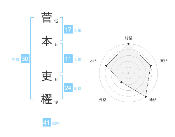 菅本 吏櫂さんの天格は17画の4点!
