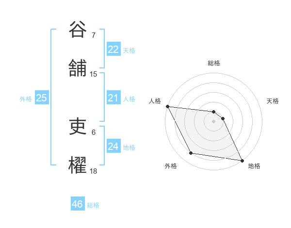 谷舗 吏櫂さんを姓名の画数から五運を鑑定