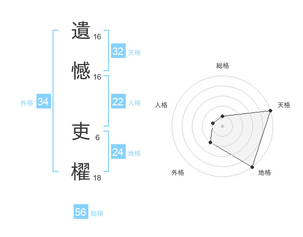 遺憾 吏櫂さんの外格は34画の2点!