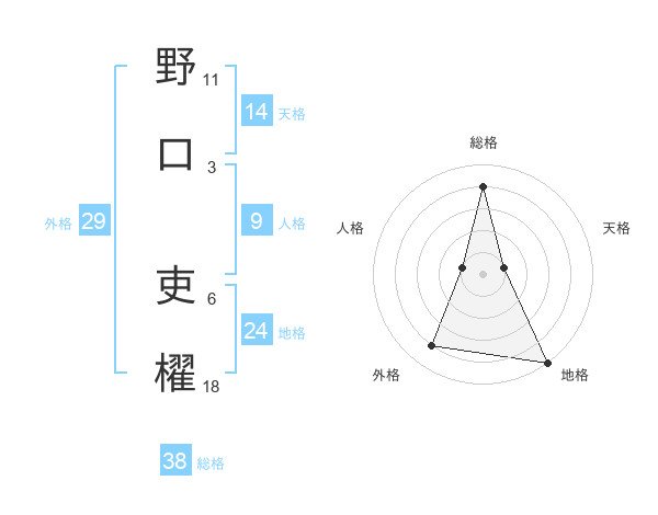 野口 吏櫂さんを姓名の画数から五運を鑑定