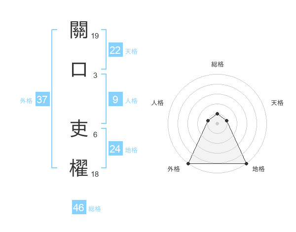 關口 吏櫂さんの外格は37画の5点!