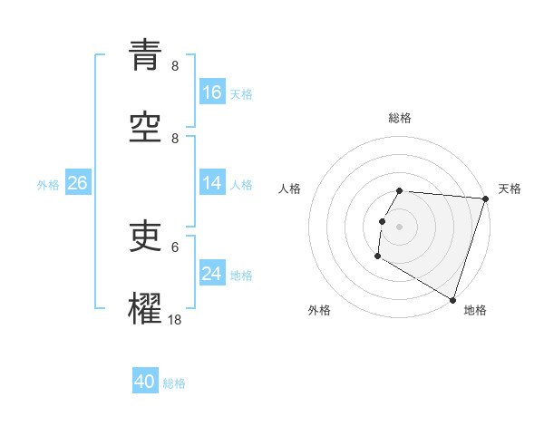 青空 吏櫂さんの天格は16画の5点!