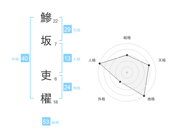 鰺坂 吏櫂さんの総格は53画の3点!