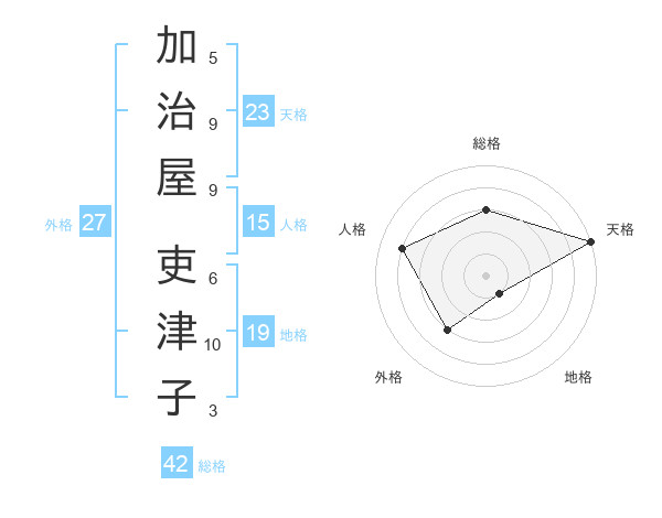 加治屋 吏津子さんを姓名の画数から五運を鑑定