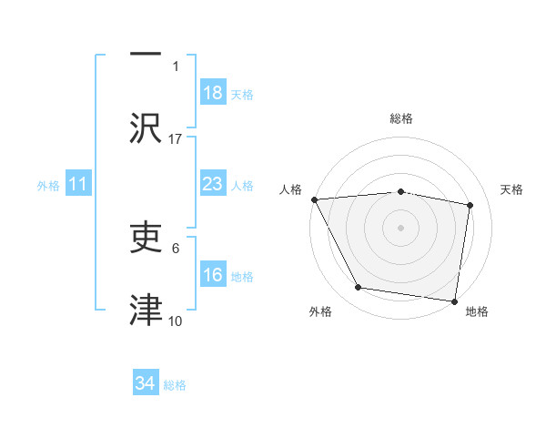 一沢 吏津さんの天格は18画の4点!