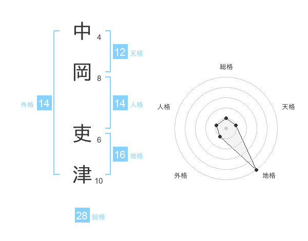 中岡 吏津さんを姓名の画数から五運を鑑定