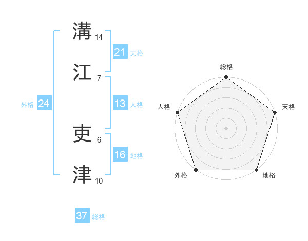 溝江 吏津さんの総格は37画の5点!
