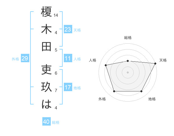 榎木田 吏玖はさんを姓名の画数から五運を鑑定