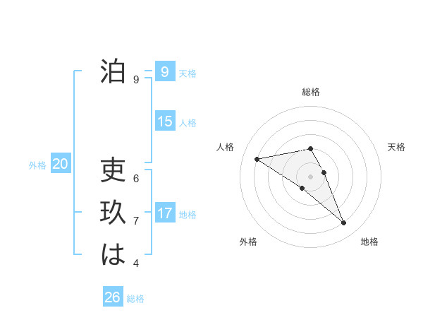 泊 吏玖はさんを姓名の画数から五運を鑑定