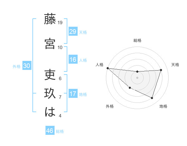 藤宮 吏玖はさんの天格は29画の4点!