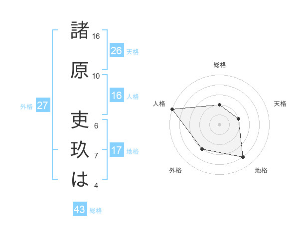 諸原 吏玖はさんを姓名の画数から五運を鑑定